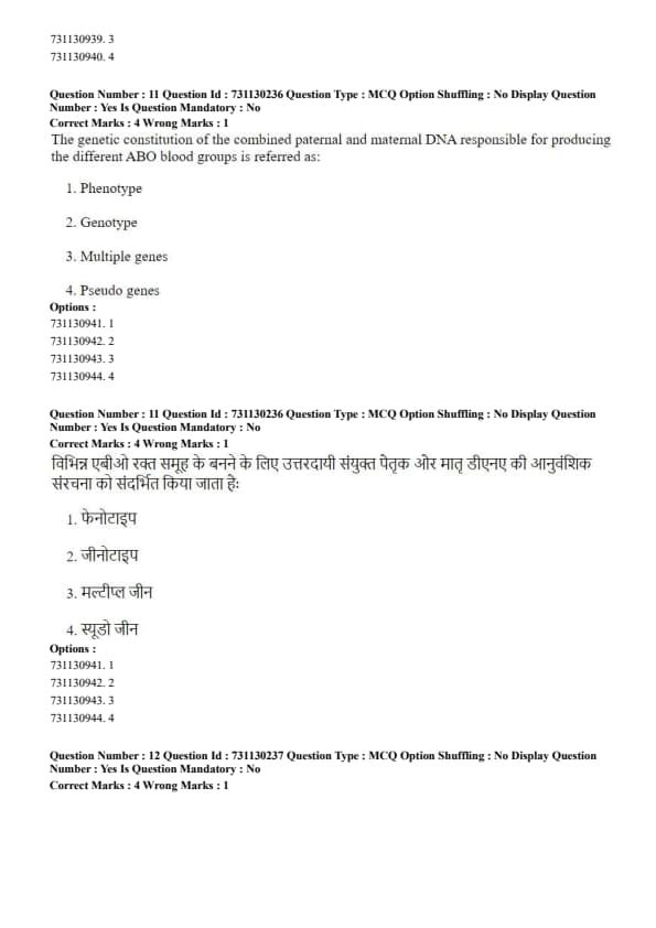 The genetic constitution of the combined paternal and maternal DNA responsible for producing the different ABO blood groups is referred as: