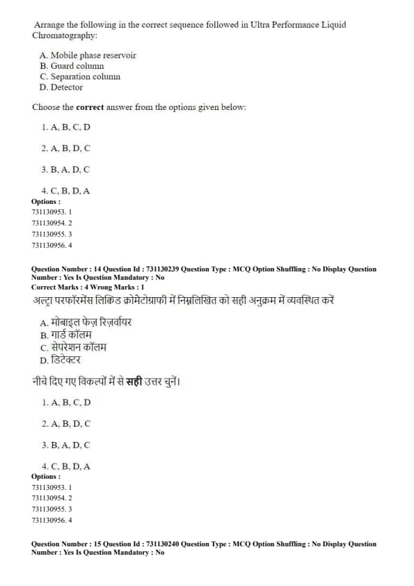 Arrange the following in the correct sequence followed in Ultra Performance Liquid Chromatography.