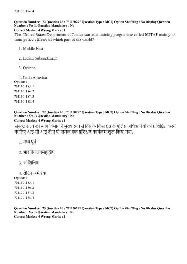 The United States Department of Justice started a training programme called ICITAP mainly to train police officers of which part of the world?