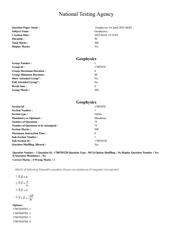 The CUET PG Geophysics exam will be held on 1st April 2025 in Shift 2, as per the official NTA exam schedule. After the exam, candidates can access the question paper, official answer key, and detailed solution PDFs. The exam tests conceptual understanding in Earth physics, seismology, gravity and magnetic methods, electrical and electromagnetic methods, geophysical instrumentation, and data interpretation.