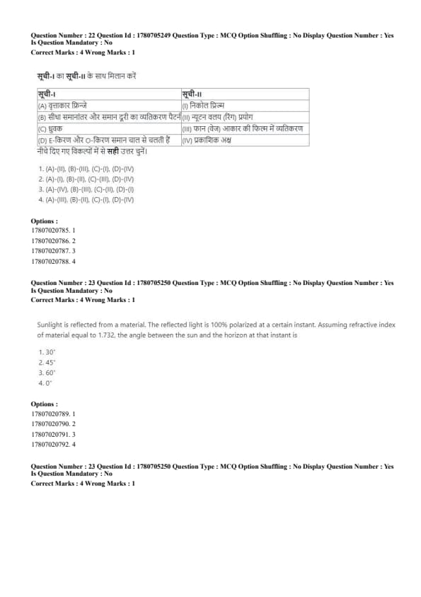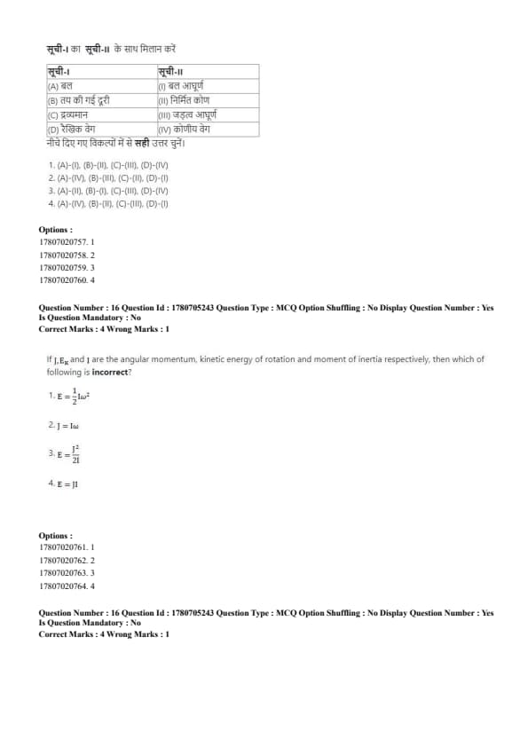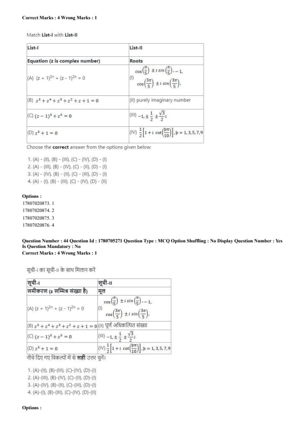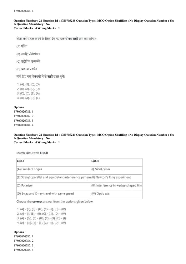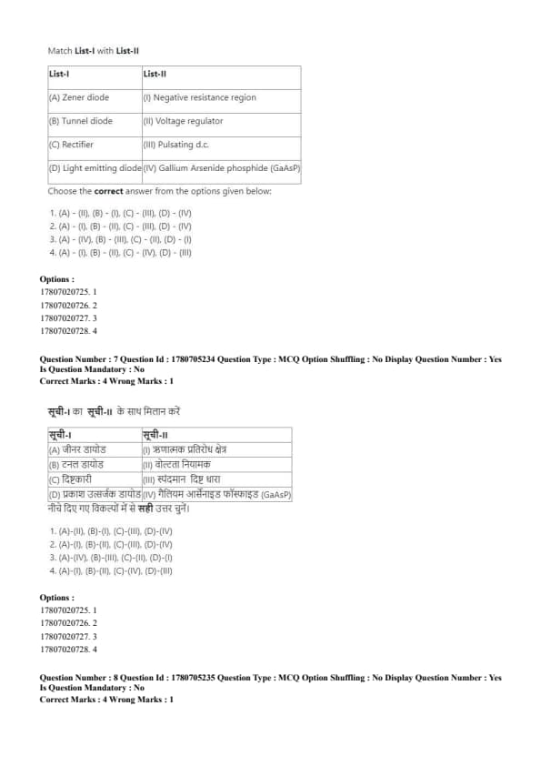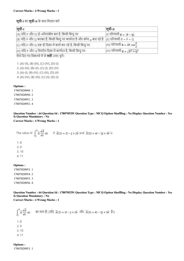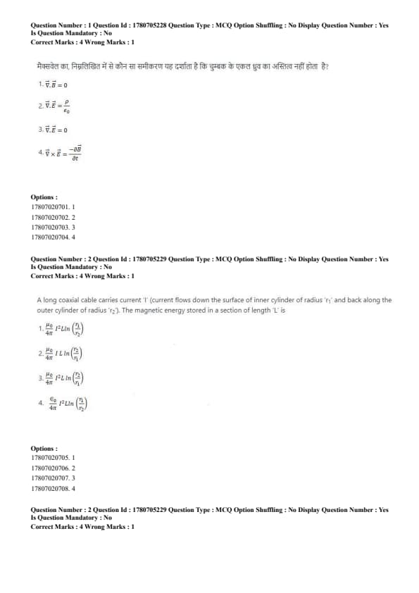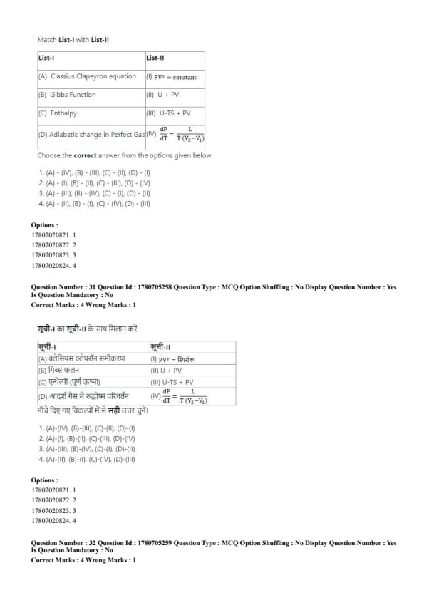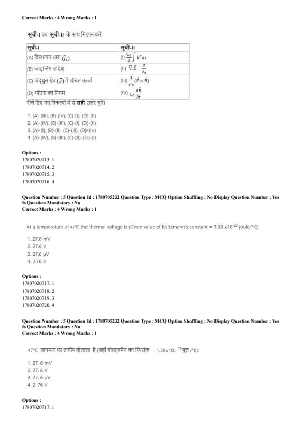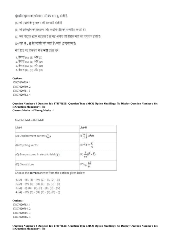 Quick Tip: For matching questions, it's often efficient to identify the one or two pairings you are most confident about first. For example, Gauss's Law (\( \nabla \cdot \vec{E} = \rho/\epsilon_0 \)) is a very standard definition. Finding this match (D -> II) can help eliminate incorrect options quickly.