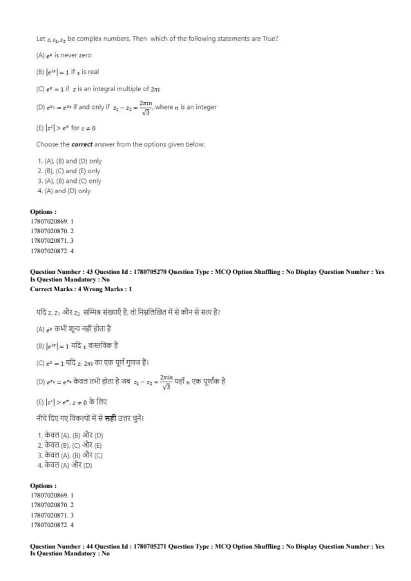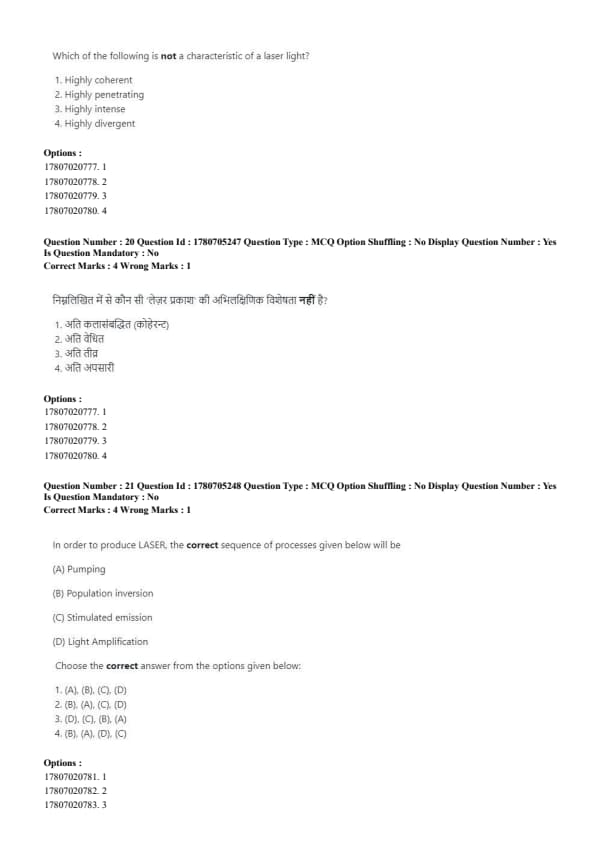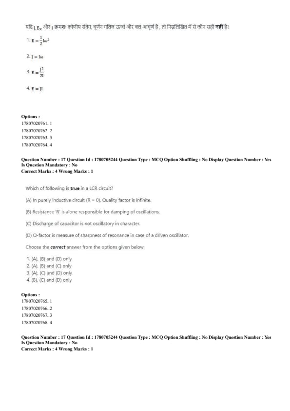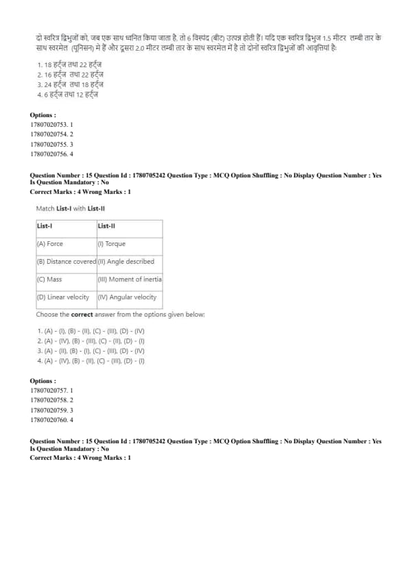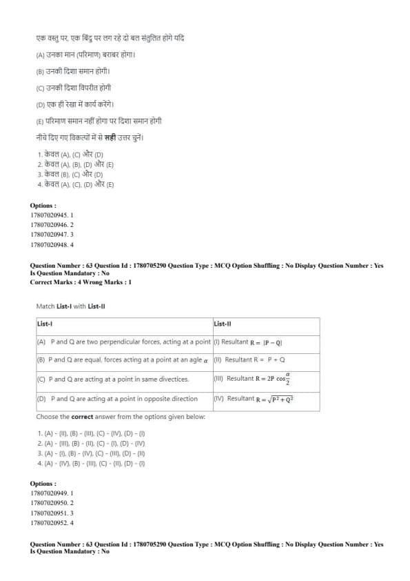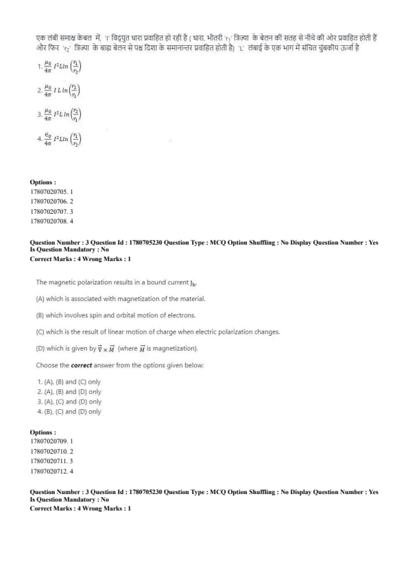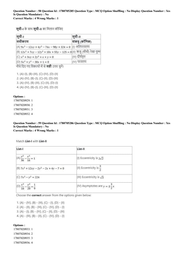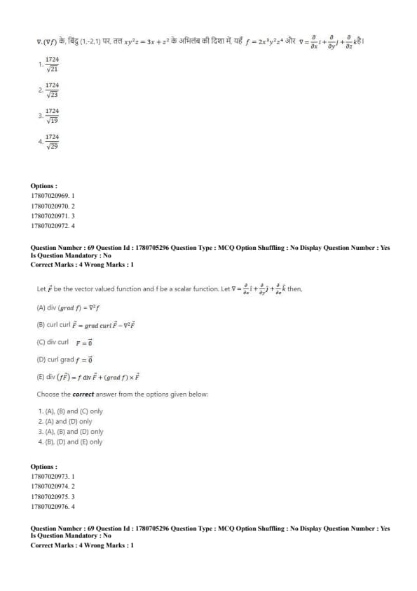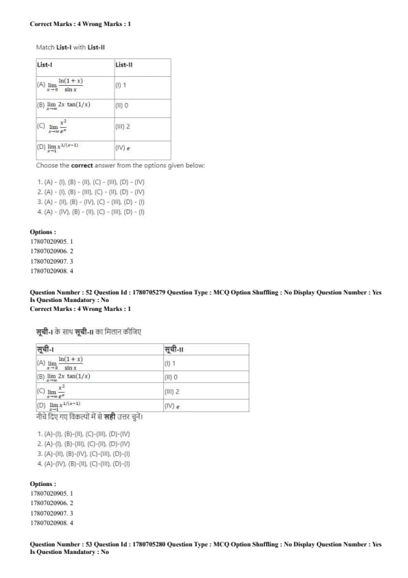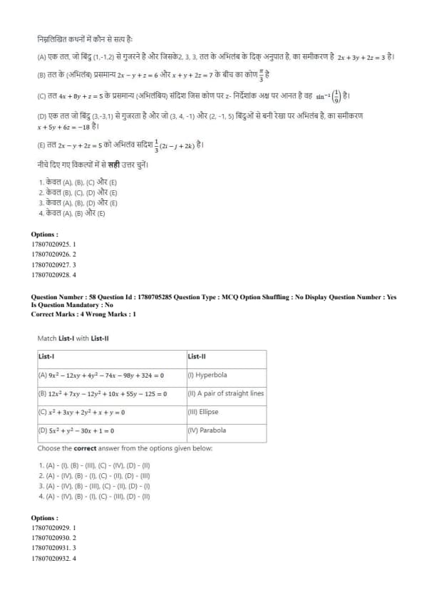 Quick Tip: For matching questions, it's often efficient to identify the one or two pairings you are most confident about first. For example, Gauss's Law (\( \nabla \cdot \vec{E} = \rho/\epsilon_0 \)) is a very standard definition. Finding this match (D -> II) can help eliminate incorrect options quickly.
