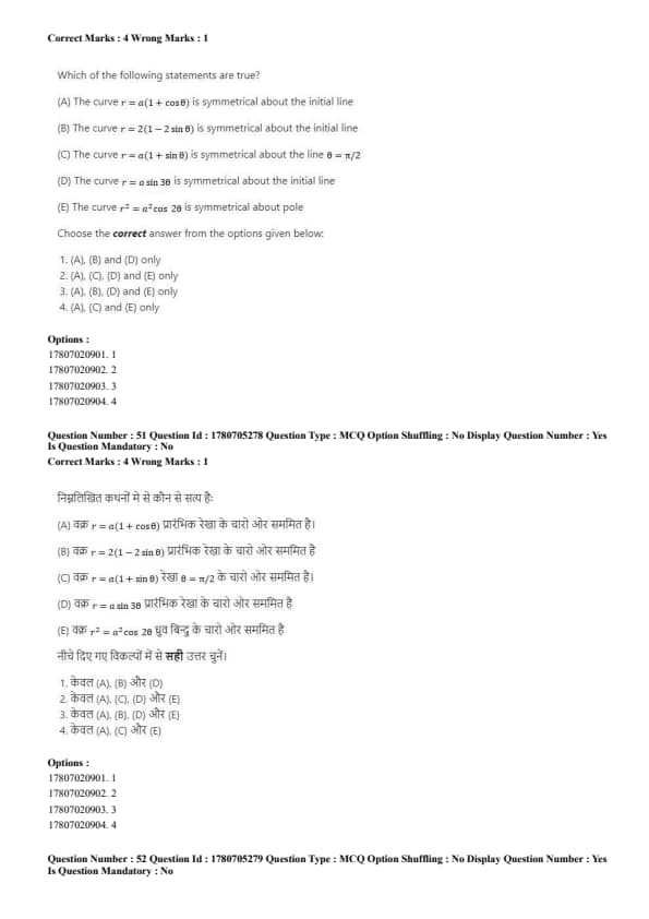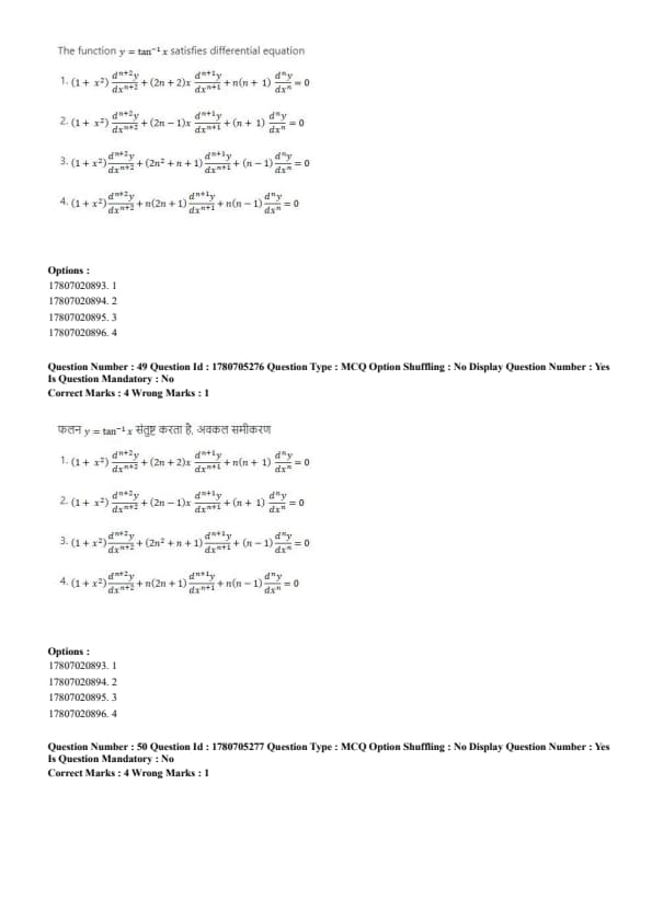 Quick Tip: The procedure for finding orthogonal trajectories is systematic: 1. Find the differential equation of the family (eliminate the constant). 2. Replace \(y'\) with \(-1/y'\). 3. Solve the new differential equation. For homogeneous equations like in part (D), the substitution \(y=vx\) is the standard method.