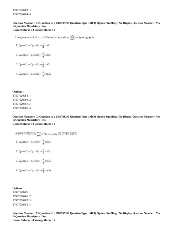 The general solution of differential equation \( \frac{d^2y}{dx^2} + 9y = \cos(3x) \) is: