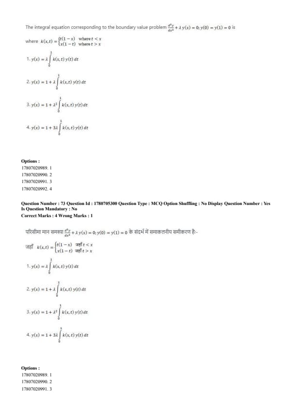 Quick Tip: The conversion of a Sturm-Liouville boundary value problem \( (p(x)y')' + q(x)y + \lambda r(x)y = 0 \) with homogeneous boundary conditions into an integral equation \( y(x) = \lambda \int_a^b G(x,t) r(t) y(t) dt \) is a standard procedure. The function \(G(x,t)\) is the Green's function for the operator \(L = (py')'+qy\). For the simple case \(y''+\lambda y=0\) with \(y(0)=y(1)=0\), the resulting integral equation is \(y(x) = \lambda \int_0^1 k(x,t) y(t) dt\), where \(k(x,t)\) is the specific kernel given.