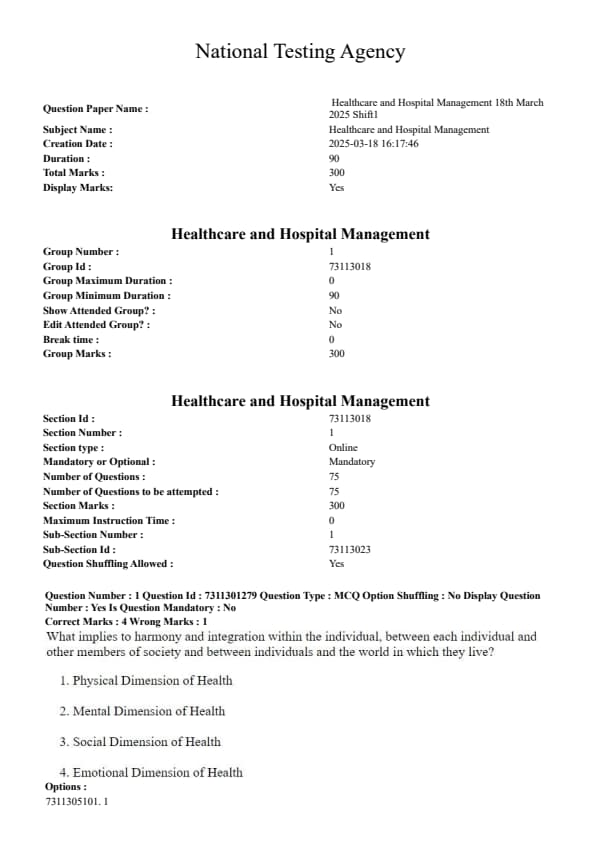 The CUET PG Healthcare and Hospital Management exam was conducted on 18th March 2025 in Shift 1. Candidates who appeared for the exam can download the official question paper, answer key, and solutions PDF for review and preparation. The exam covers key topics such as healthcare systems, hospital operations, public health policies, healthcare laws, medical ethics, hospital information systems, and strategic management in healthcare.