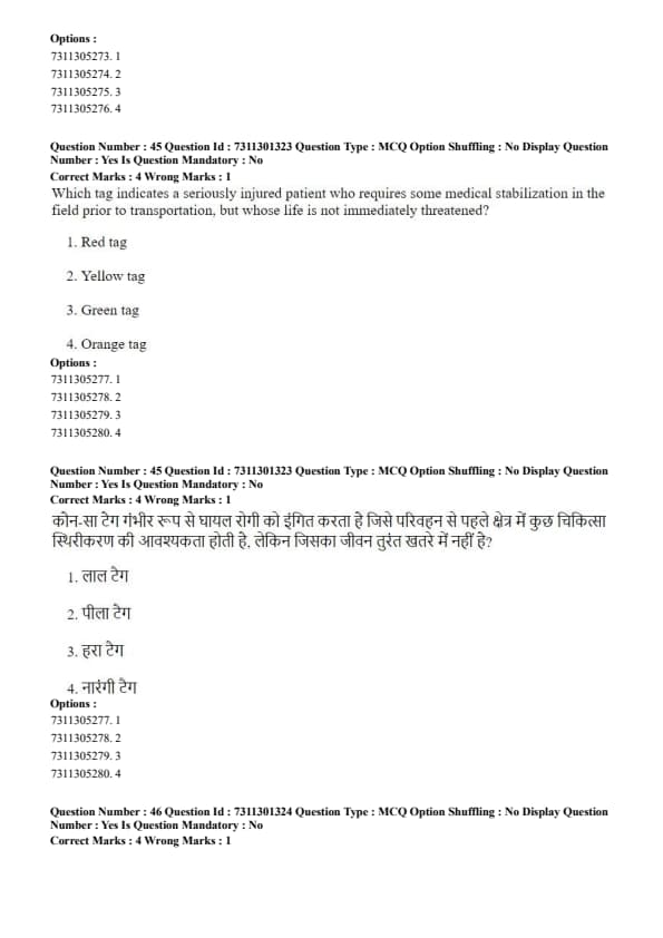 Which tag indicates a seriously injured patient who requires some medical stabilization in the field prior to transportation, but whose life is not immediately threatened?