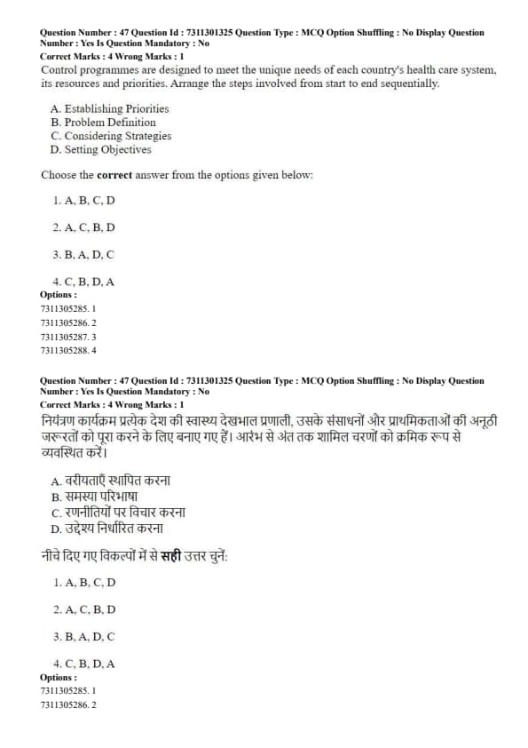 Control programmes are designed to meet the unique needs of each country's health care system, its resources and priorities. Arrange the steps involved from start to end sequentially: