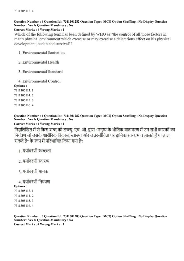 Which of the following terms has been defined by WHO as "the control of all those factors in man's physical environment which exercise or may exercise a deleterious effect on his physical development, health and survival"?
