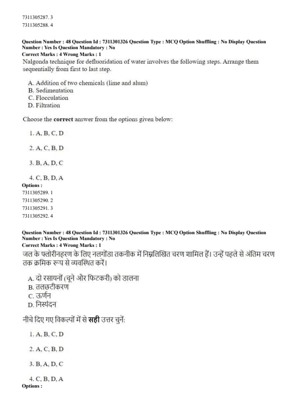 Nalgonda technique for defluoridation of water involves the following steps. Arrange them sequentially from first to last step.
