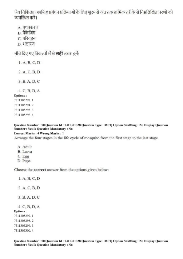 Arrange the four stages in the life cycle of mosquito from the first stage to the last stage.