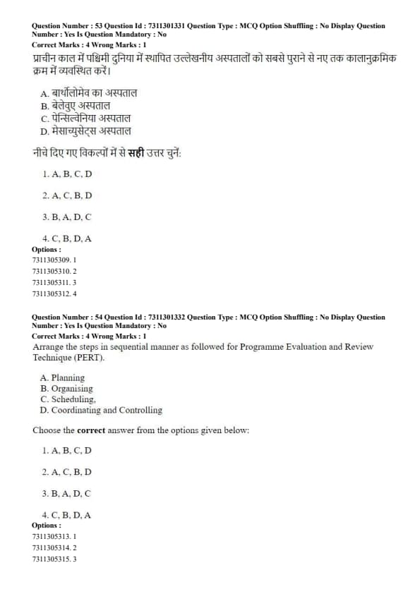 Arrange the steps in sequential manner as followed for Programme Evaluation and Review Technique (PERT).