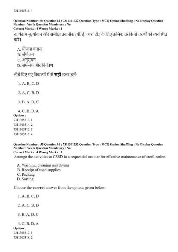 Arrange the activities at CSSD in a sequential manner for effective maintenance of sterilization.