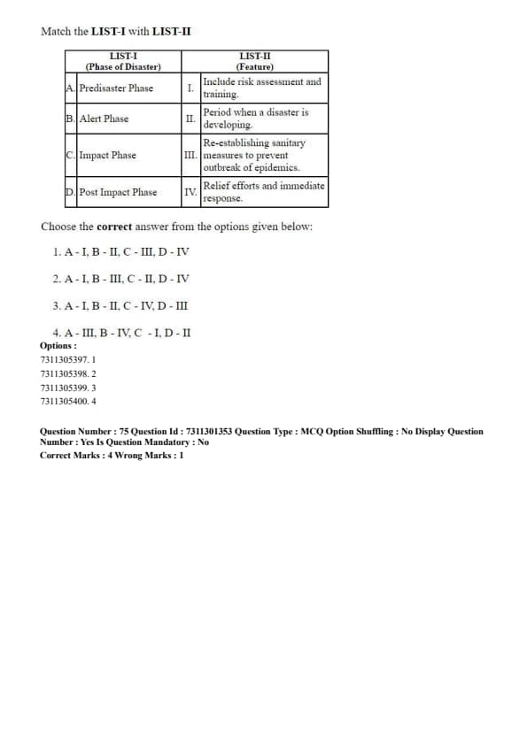 There are 75 multiple-choice questions to be answered in 60 minutes. Each correct answer awards 4 marks, with 1 mark deducted for each wrong answer.