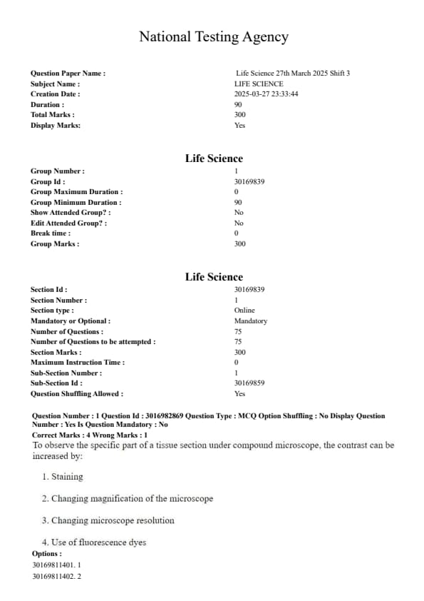 CUET PG Life Science 2025 Question Paper with Answer Key PDF