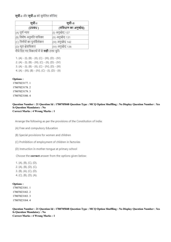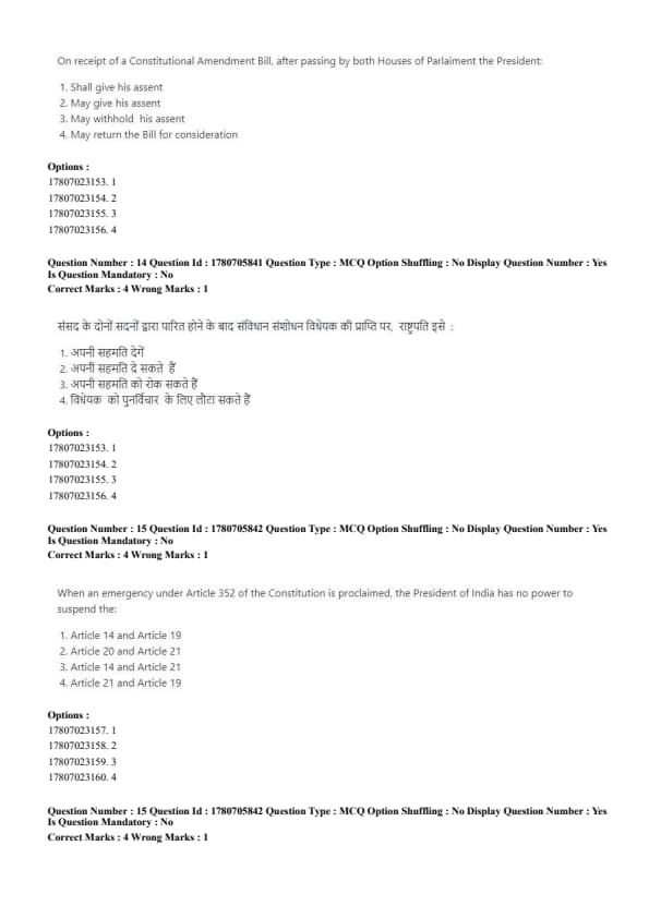 - Article 20 and Article 21 cannot be suspended even during an emergency, ensuring protection of life and personal liberty. Quick Tip: Article 20 and 21 safeguard fundamental rights during emergencies.