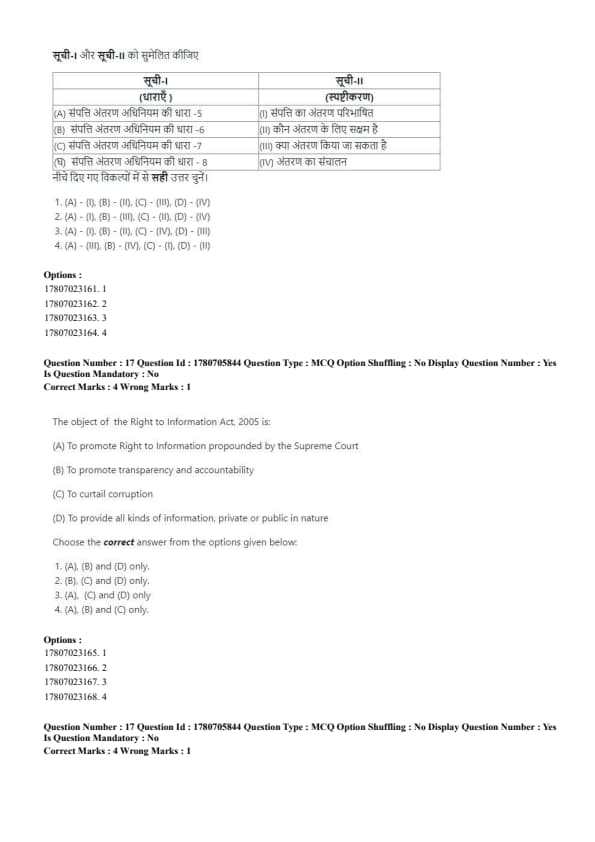 Step 1: Identify the sections related to Transfer of Property Act.