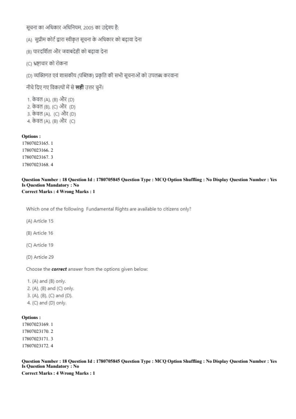 - Articles 15, 16, and 19 apply only to citizens, while Article 29 applies to all persons. Quick Tip: Fundamental Rights provide basic freedoms and rights to Indian citizens.