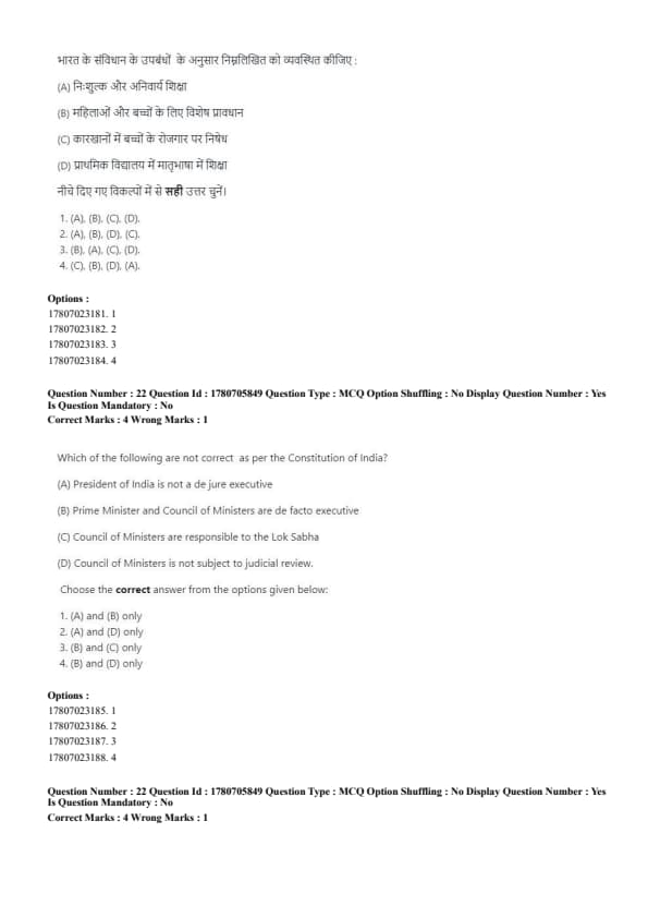 - (D) False: Council of Ministers is subject to judicial review. Quick Tip: Judicial review ensures that executive actions conform to constitutional law.