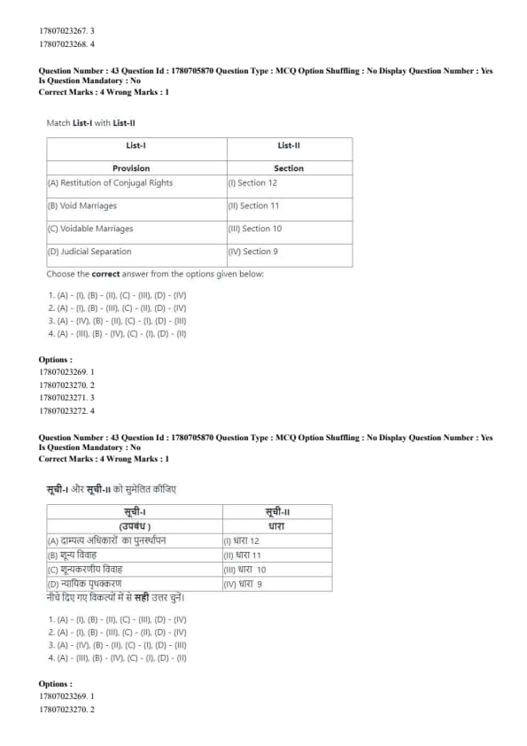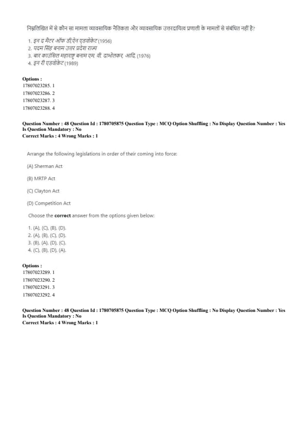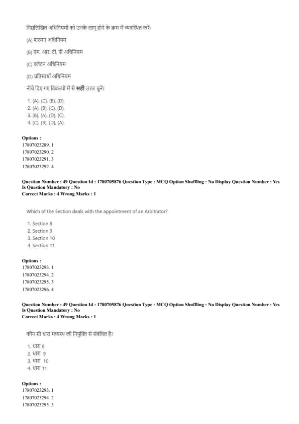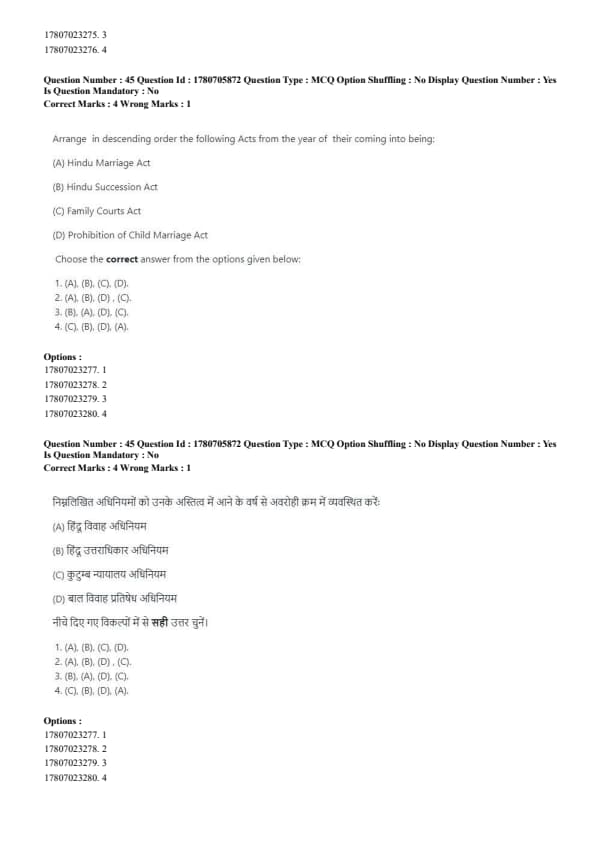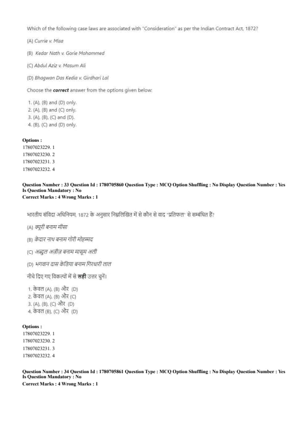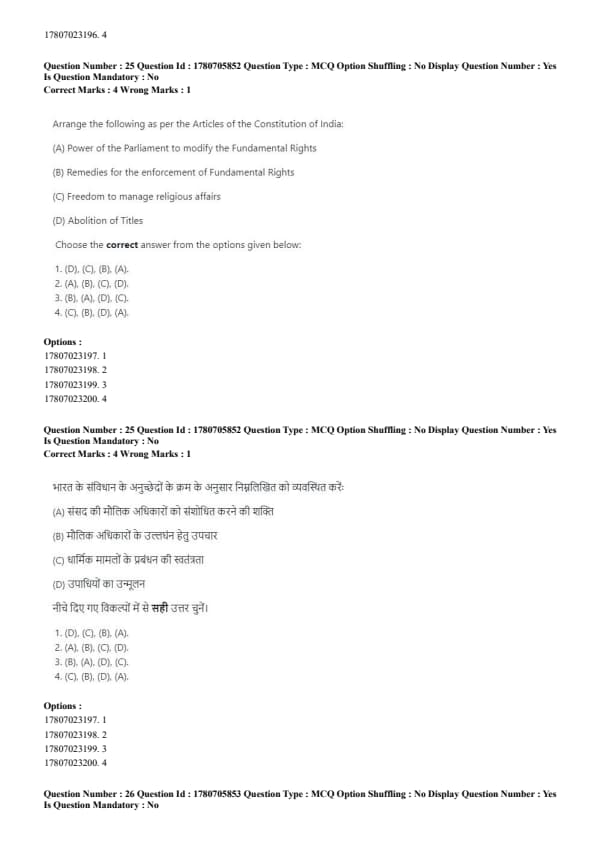 - Correct order: (B), (D), (A), (C). Quick Tip: The examination process in court follows a systematic order: Examination-in-Chief → Cross-Examination → Re-Examination → Judgment.