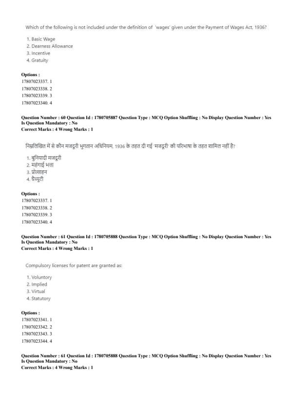 - Wages under the Payment of Wages Act do not include gratuity, as it is a separate payment made upon retirement or resignation. Quick Tip: Gratuity is a retirement benefit and is not considered a part of regular wages under the Payment of Wages Act.