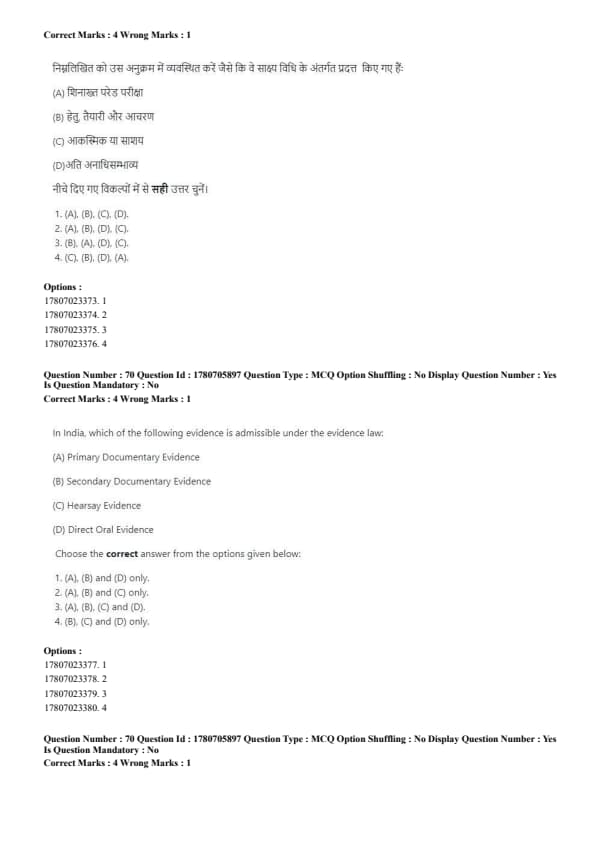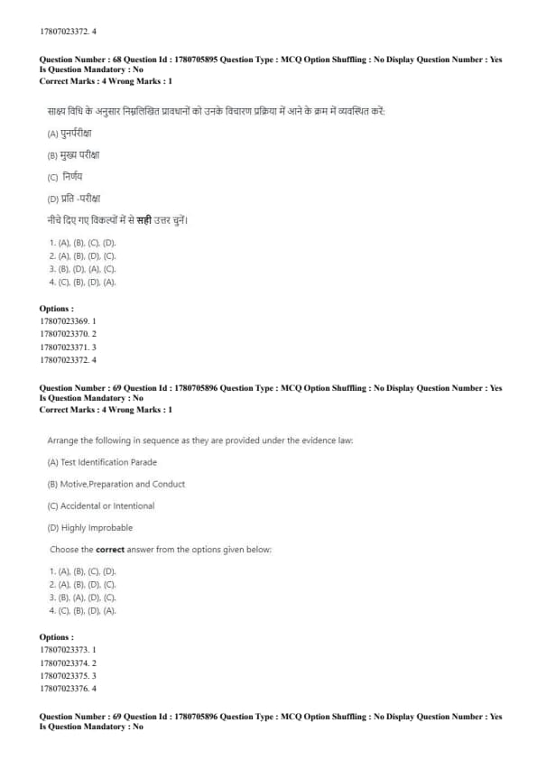 - The correct sequence is: (B), (A), (D), (C). Quick Tip: When assessing evidence, first establish motive and preparation, then proceed with identification, and consider the intent or accident afterward.