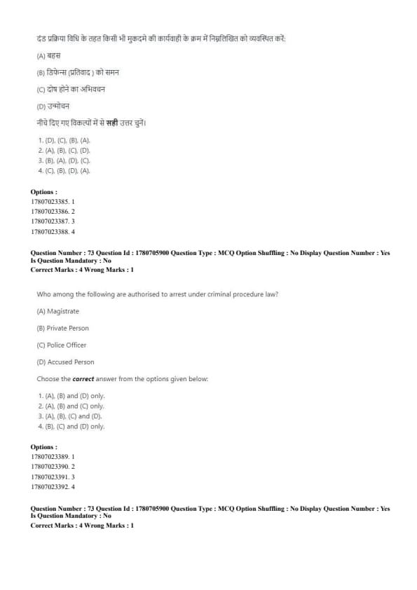 The correct answer is (A), (B) and (C) only. Quick Tip: Magistrates, police officers, and in some cases, private persons can arrest, but the accused cannot arrest anyone.