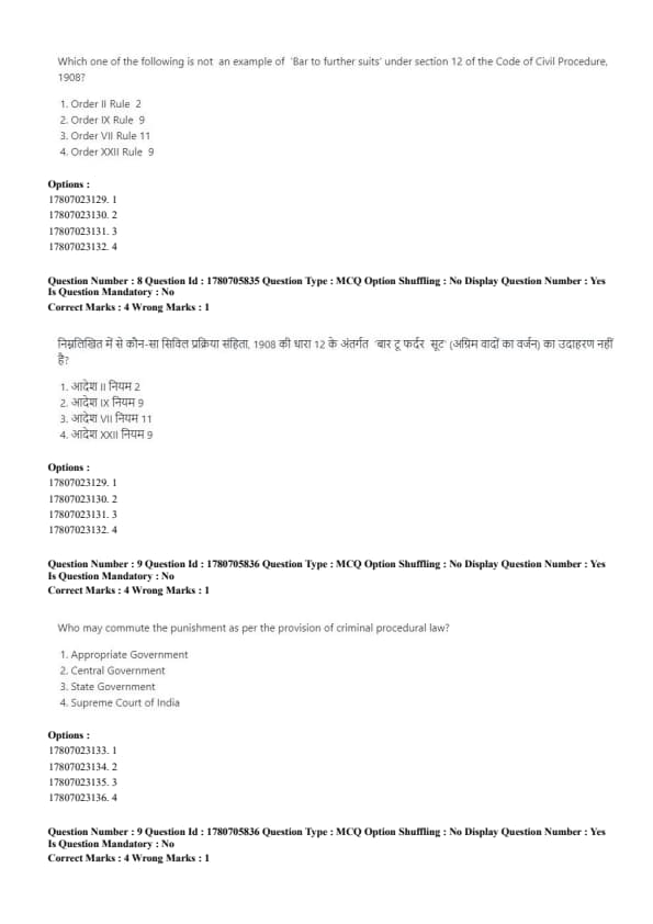 - Order XXII Rule 9 → Deals with abatement of suits, not bar to further suits. Quick Tip: Remember, bar provisions under CPC relate to the consequences for failure to pursue or maintain claims.