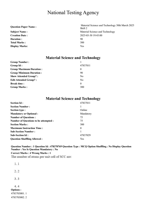 | CUET PG Material Science and Technology Question Paper with Solutions PDF | Download PDF | Check Solutions |