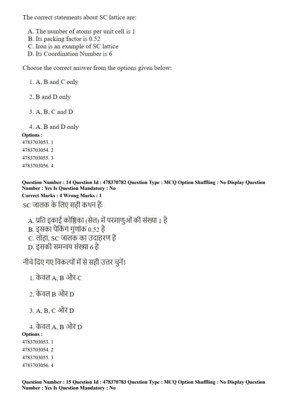 The correct statements about SC lattice are: