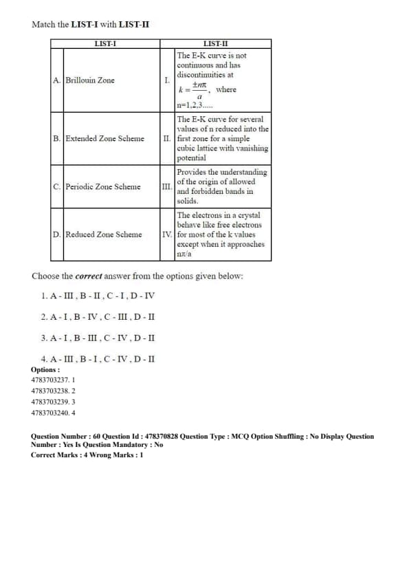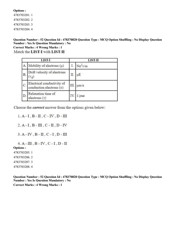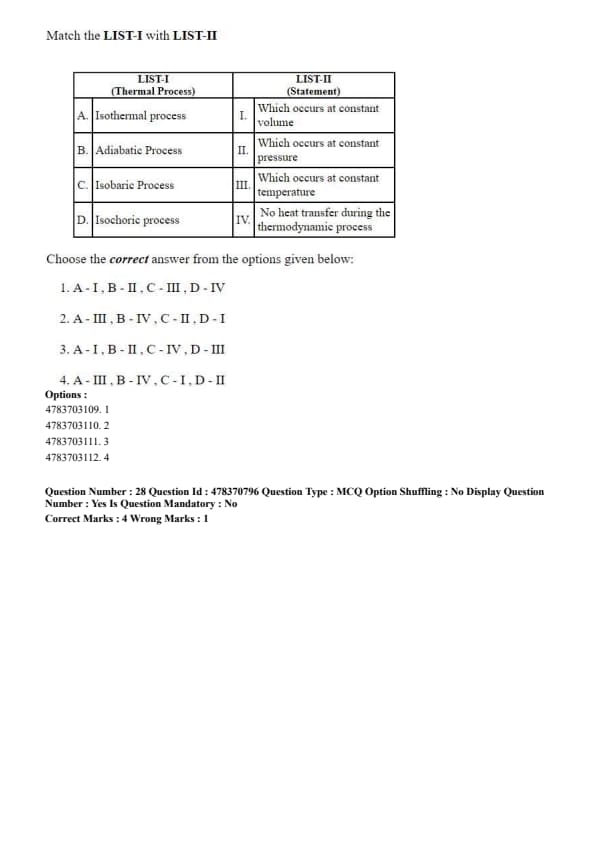 Match the LIST-I with LIST-II