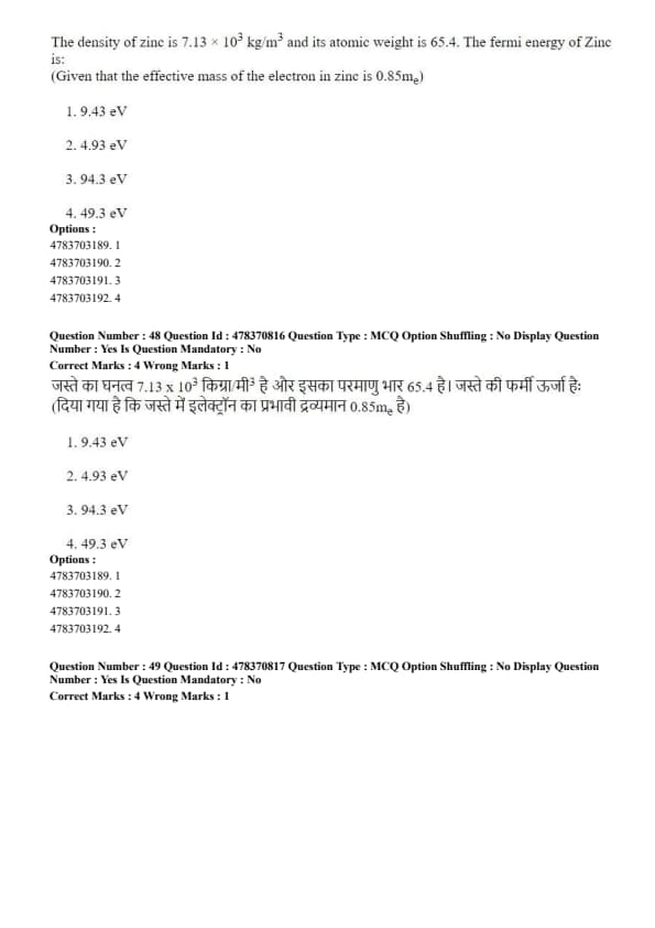 The density of zinc is \(7.13 \times 10^3\) kg/m\(^3\) and its atomic weight is 65.4. The fermi energy of Zinc is: