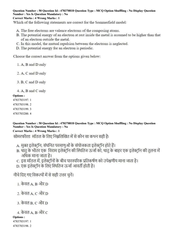 Which of the following statements are correct for the Sommerfeld model:
