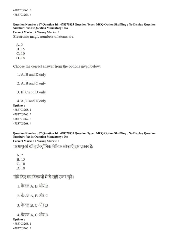Electronic magic numbers of atoms are: