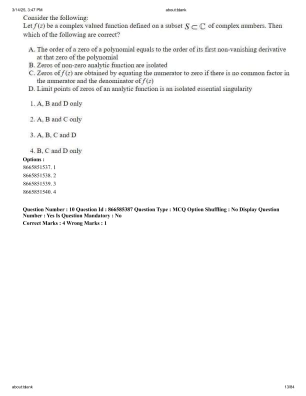 Consider the following: Let f(z) be a complex valued function defined on a subset \( S \subset \mathbb{C} \) of complex numbers. Then which of the following are correct?