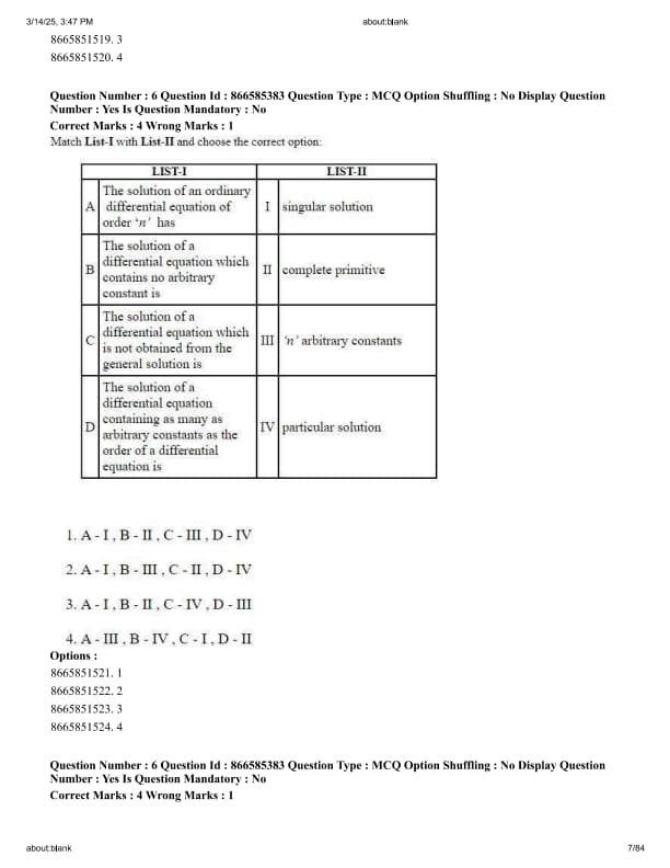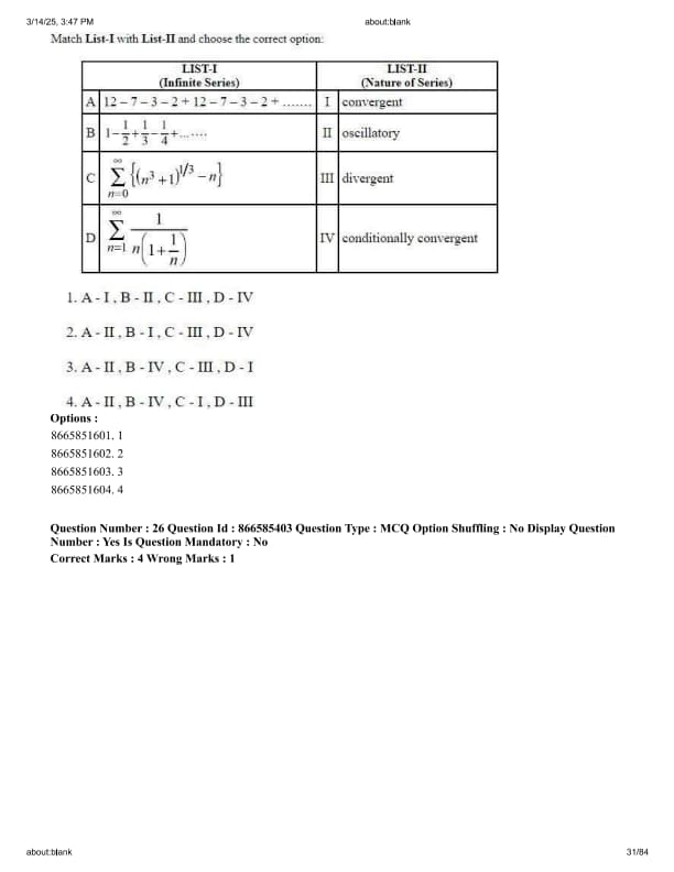 Match List-I with List-II and choose the correct option: