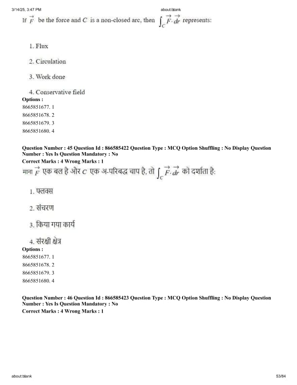 If \( \vec{F} \) be the force and C is a non-closed arc, then \( \int_C \vec{F} \cdot d\vec{r} \) represents: