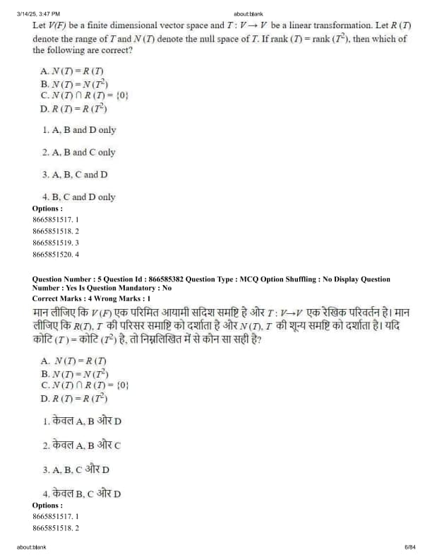 Let V(F) be a finite dimensional vector space and T: V \(\to\) V be a linear transformation. Let R(T) denote the range of T and N(T) denote the null space of T. If rank(T) = rank(T2), then which of the following are correct?