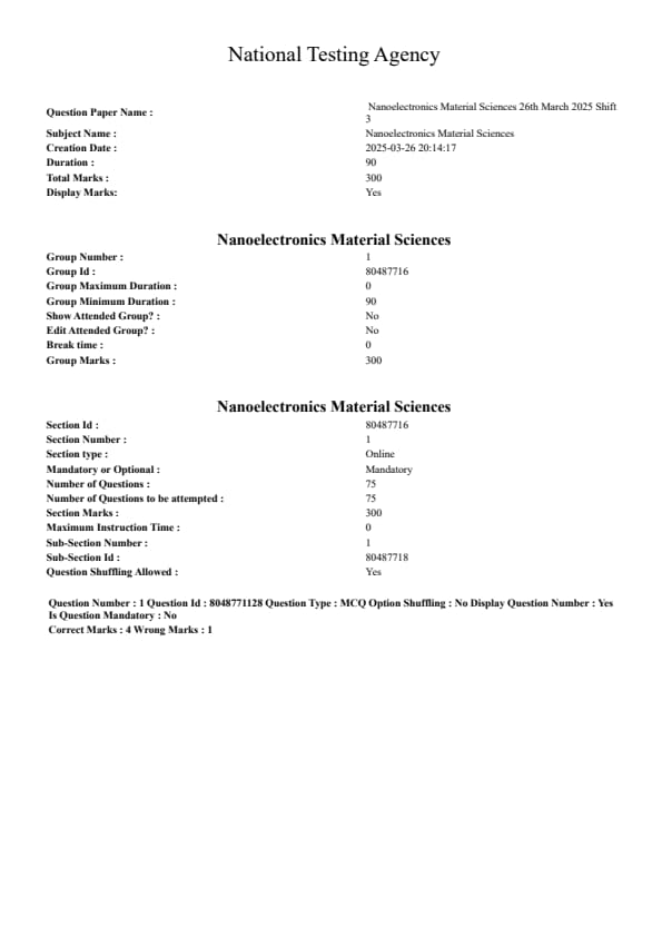 A total of 75 multiple-choice questions must be attempted within 60 minutes, with 4 marks for each correct answer and 1 mark deducted for each incorrect one.