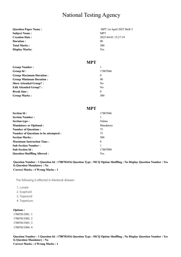 | CUET PG MPT Question Paper with Solutions PDF | Download PDF | Check Solutions |