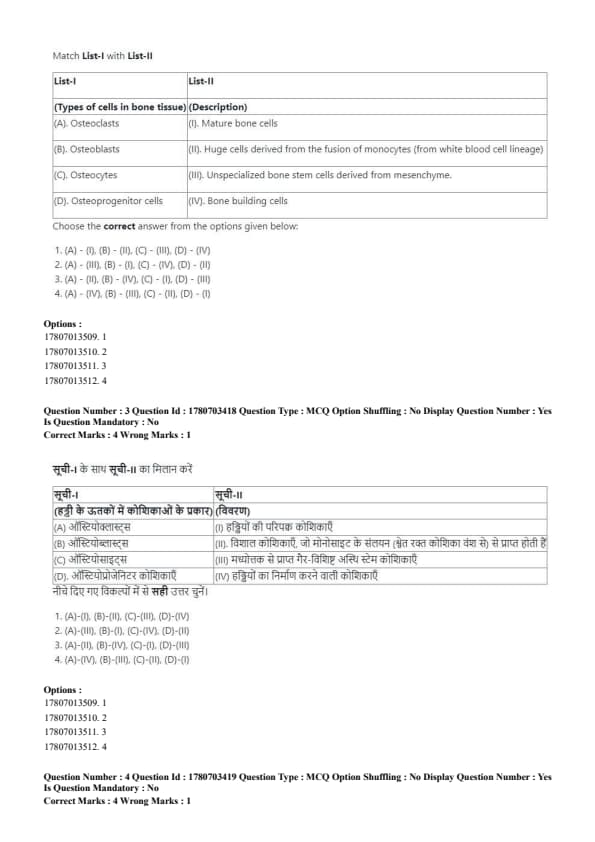 Match List-I with List-II (Types of cells in bone tissue with their description)
