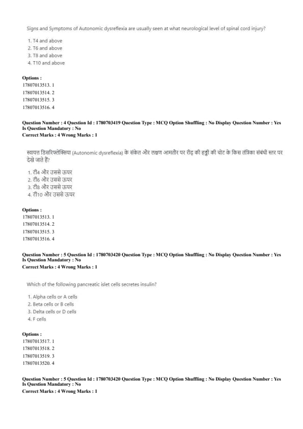 - (B) T6 and above: Correct. Injuries at T6 or above most commonly lead to autonomic dysreflexia.