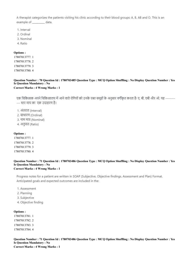 - (3) Nominal: Correct. Blood groups (A, B, AB, O) are categorical and cannot be ordered or ranked, making them nominal data.
