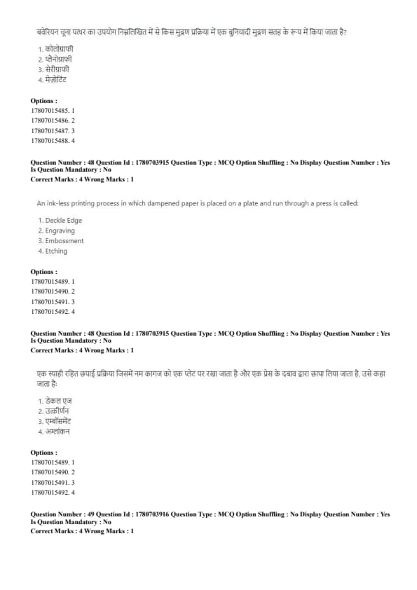 An ink-less printing process in which dampened paper is placed on a plate and run through a press is called: