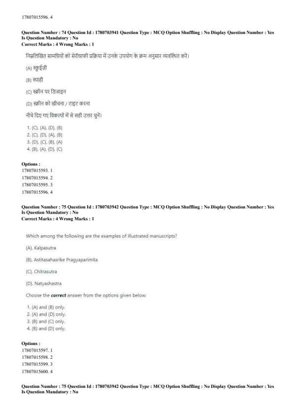Candidates must attempt 75 questions within 60 minutes, totaling 300 marks. Each correct answer awards 4 marks, while 1 mark is deducted for every incorrect response.