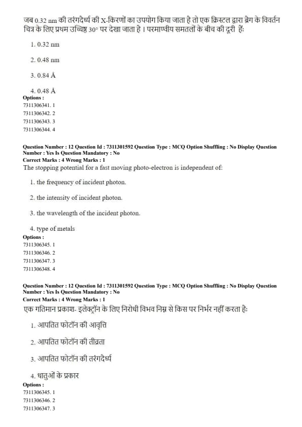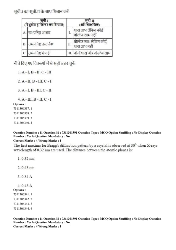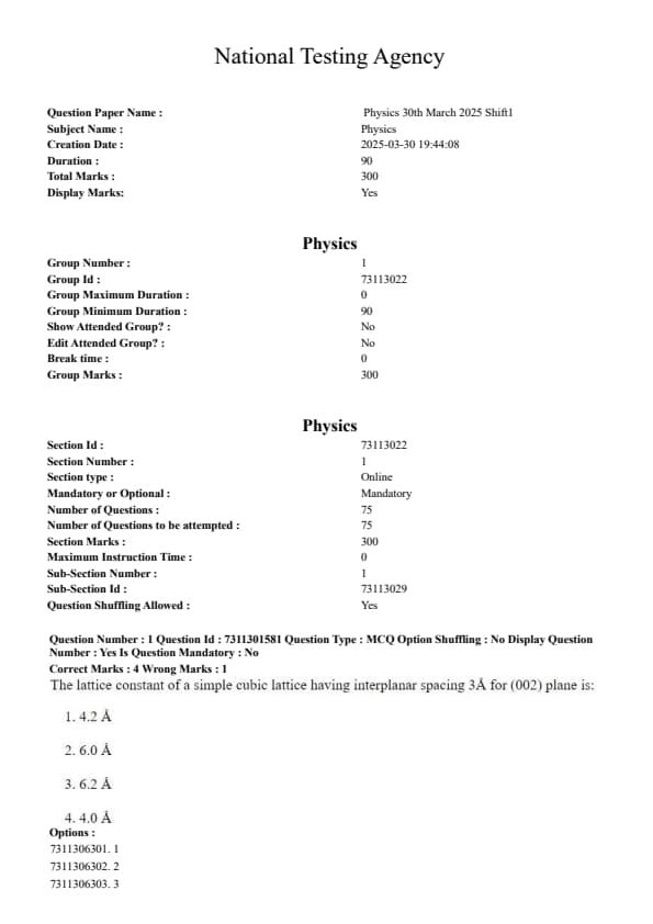 Thus, the lattice constant is \( 6.0 \, A° \). Quick Tip: For any cubic crystal system (Simple, BCC, or FCC), the formula for interplanar spacing \( d = a / \sqrt{h^2 + k^2 + l^2} \) remains the same. Memorizing this single formula is sufficient for all cubic lattice problems involving Miller indices and lattice parameters.