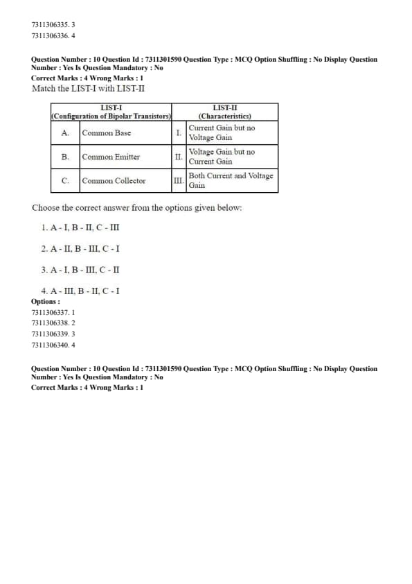 - Option (1) has C\(\rightarrow\)III, which is incorrect.