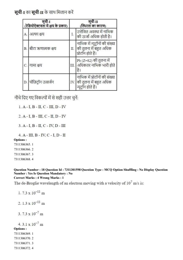 Therefore, option (2) is the correct choice, assuming a typo in the question's list. Quick Tip: When facing matching questions with a potential error, first identify all the pairs you are certain about. Then, use the process of elimination to find the option that correctly matches all the unambiguous pairs. The remaining pair in that option is likely the intended, albeit flawed, answer.