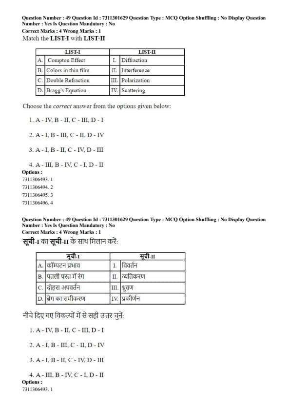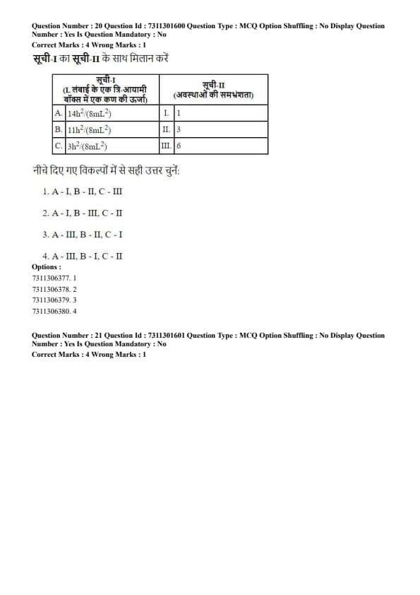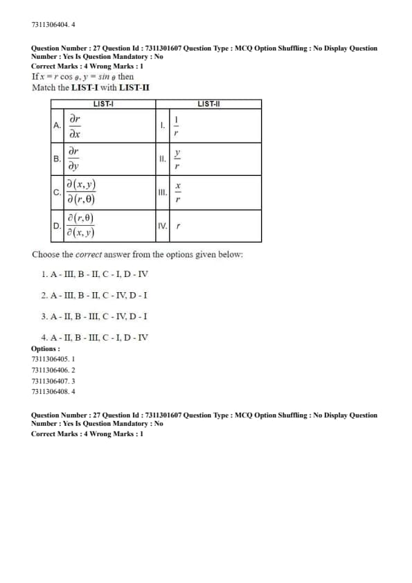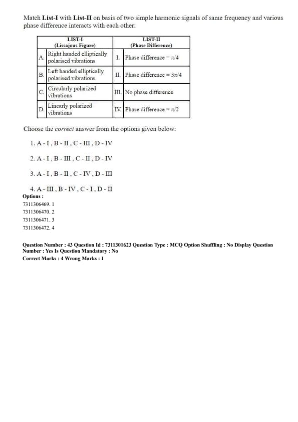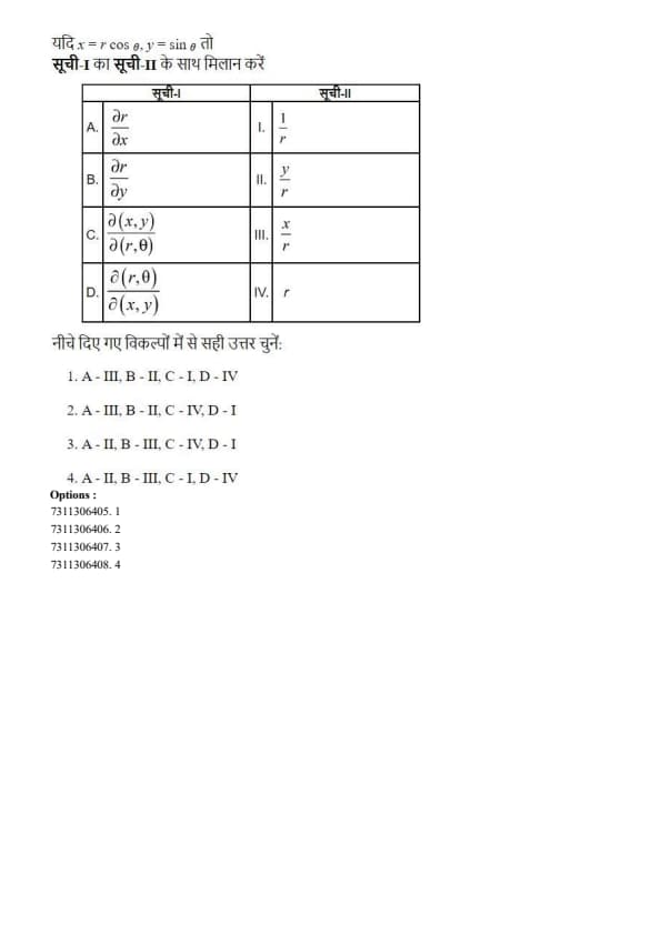 - Option (4) has A\(\rightarrow\)III, which is incorrect.