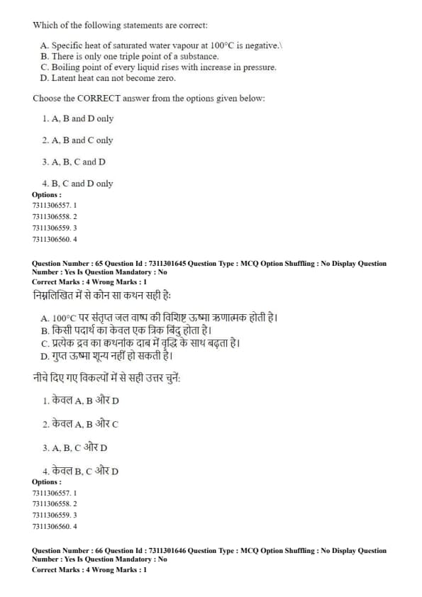 Statements A, B, and C are correct. Quick Tip: Phase diagrams are essential for understanding these concepts. The triple point is a single point, the boiling point is a line (the liquid-vapor coexistence curve), and this line terminates at the critical point, where the latent heat of vaporization vanishes.